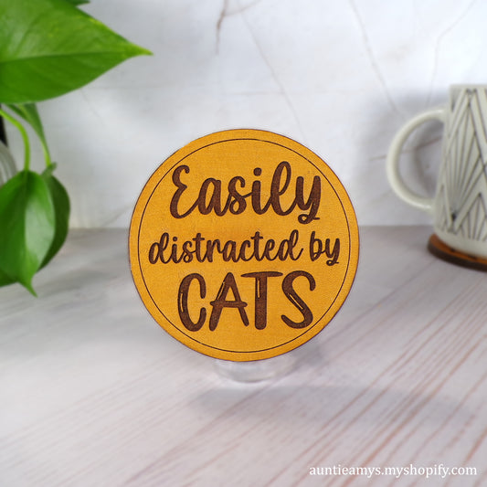 Easily Distracted By Cats - Leather Coaster