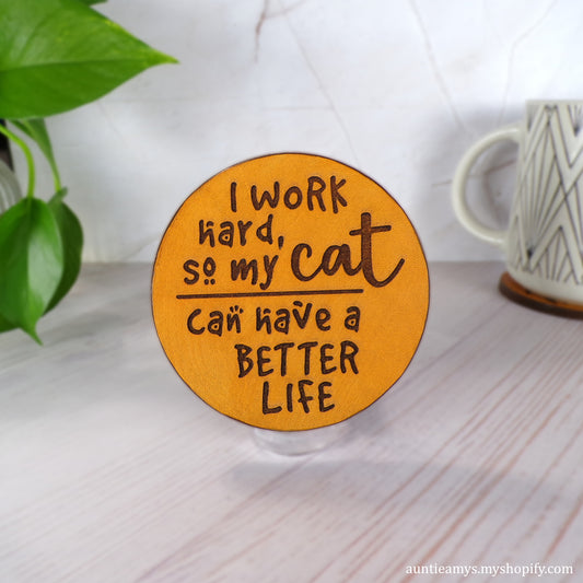I Work Hard So My Cat Can Have a Better Life - Leather Coaster
